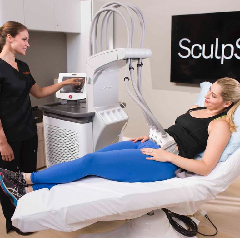 SculpSure is a non-invasive body contouring treatment that uses laser technology to target and eliminate fat cells without harming the skin. The treatment is FDA-cleared and can effectively treat areas like the abdomen, love handles, and thighs.